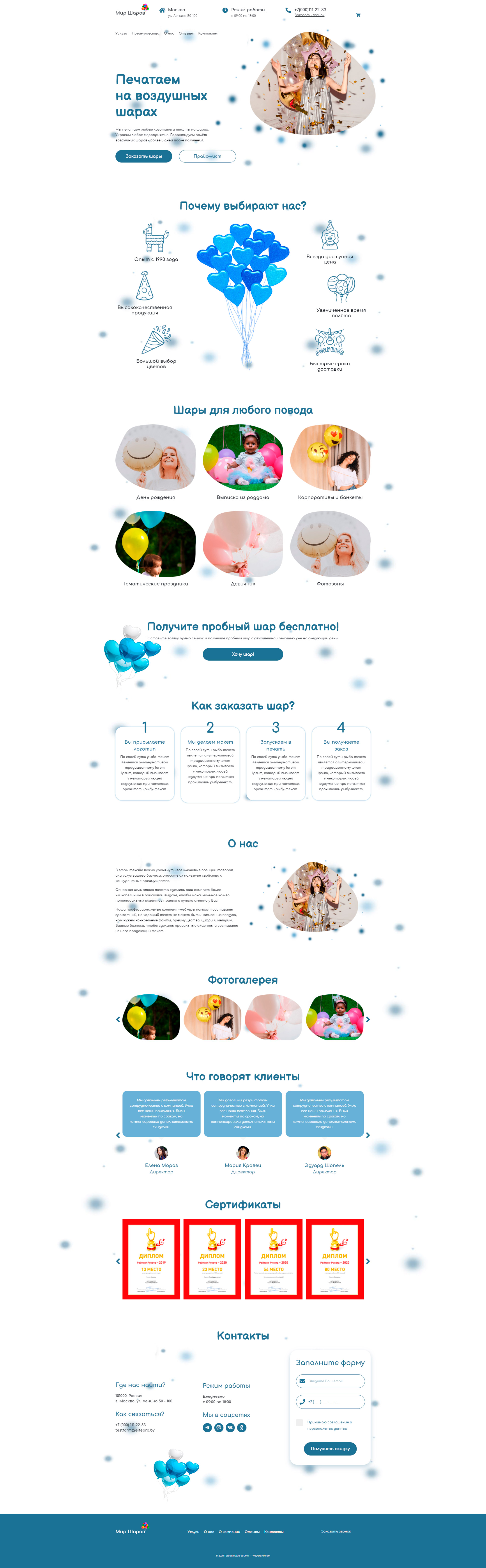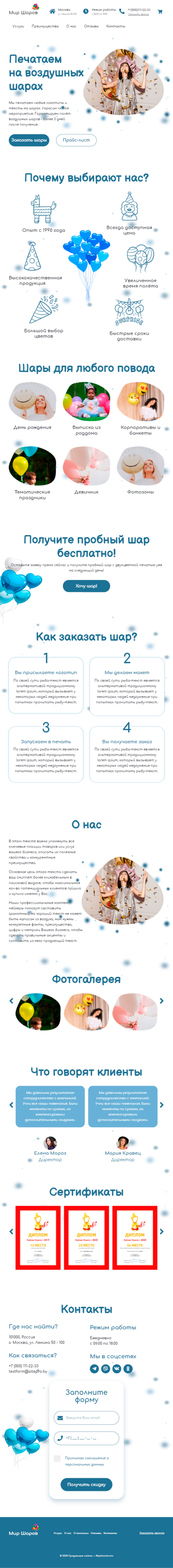 Закажите готовый продающий сайт лендинг #1826202 в Арзамасе за 1-3 дня «под ключ»: свёрстан, отрисован и готов к рекламе. Тематика шаблона «Печать на воздушных шарах».