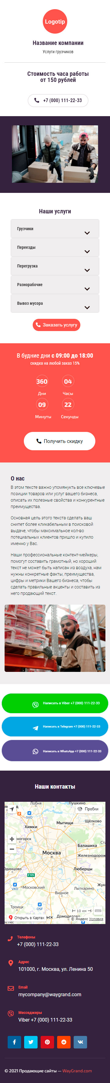 Закажите готовый продающий сайт визитка #2562101 в Арзамасе за 5-7 дня «под ключ»: свёрстан, отрисован и готов к рекламе. Тематика шаблона «Услуги грузчиков».