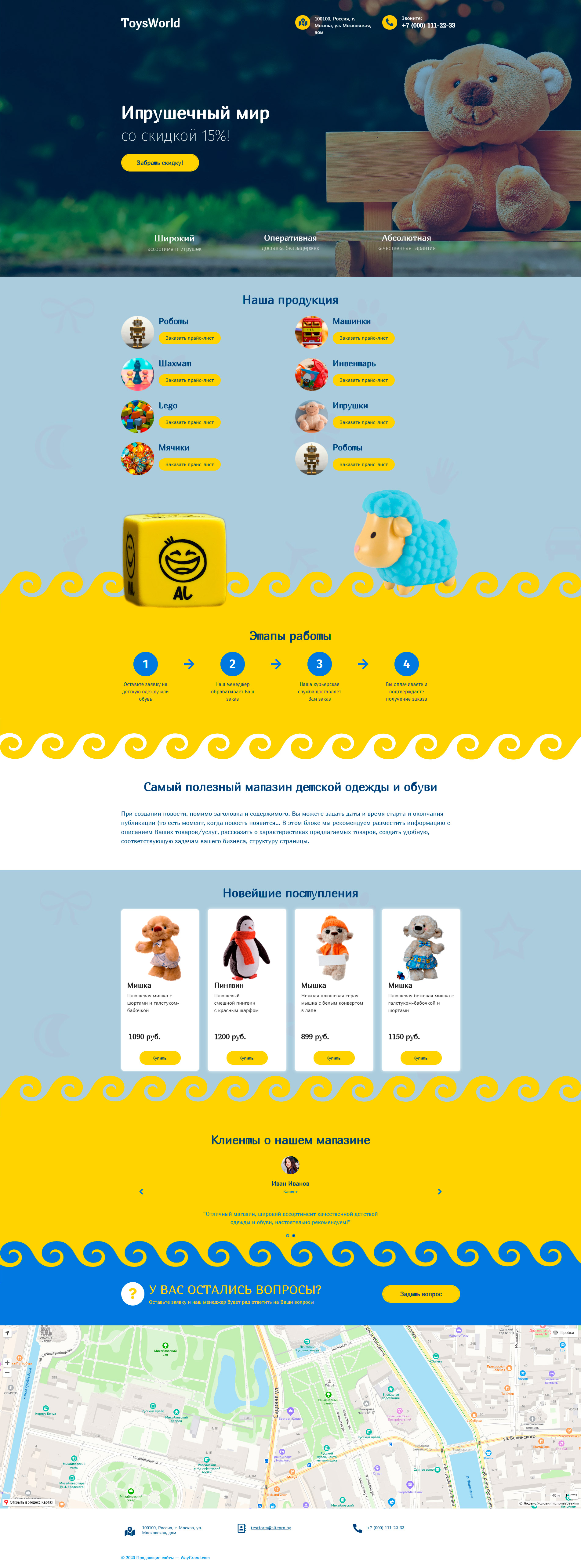 Закажите готовый продающий сайт лендинг #1509201 в Арзамасе за 1-3 дня «под ключ»: свёрстан, отрисован и готов к рекламе. Тематика шаблона «Игрушечный мир».