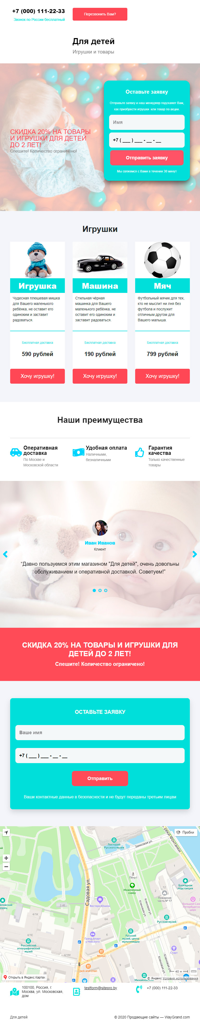 Закажите готовый продающий сайт лендинг #1509202 в Арзамасе за 1-3 дня «под ключ»: свёрстан, отрисован и готов к рекламе. Тематика шаблона «Игрушки и товары».