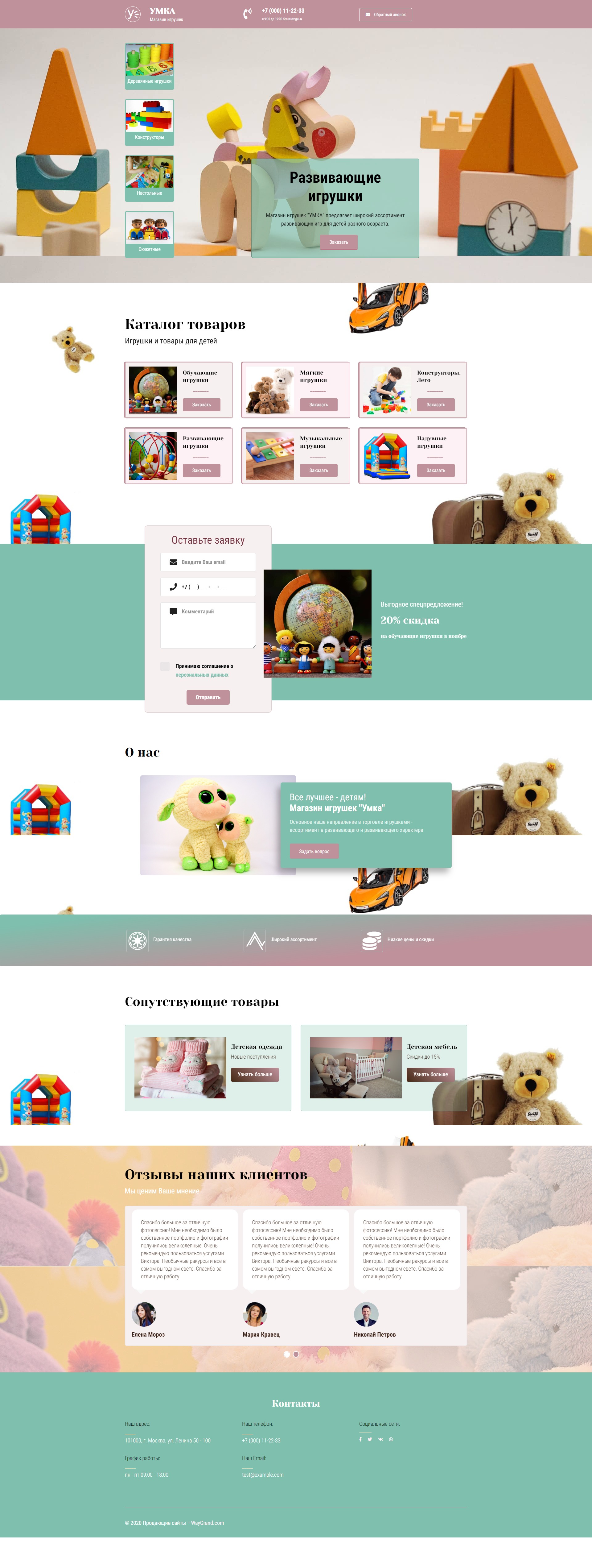 Закажите готовый продающий сайт лендинг #2442201 в Арзамасе за 1-3 дня «под ключ»: свёрстан, отрисован и готов к рекламе. Тематика шаблона «Магазин игрушек».