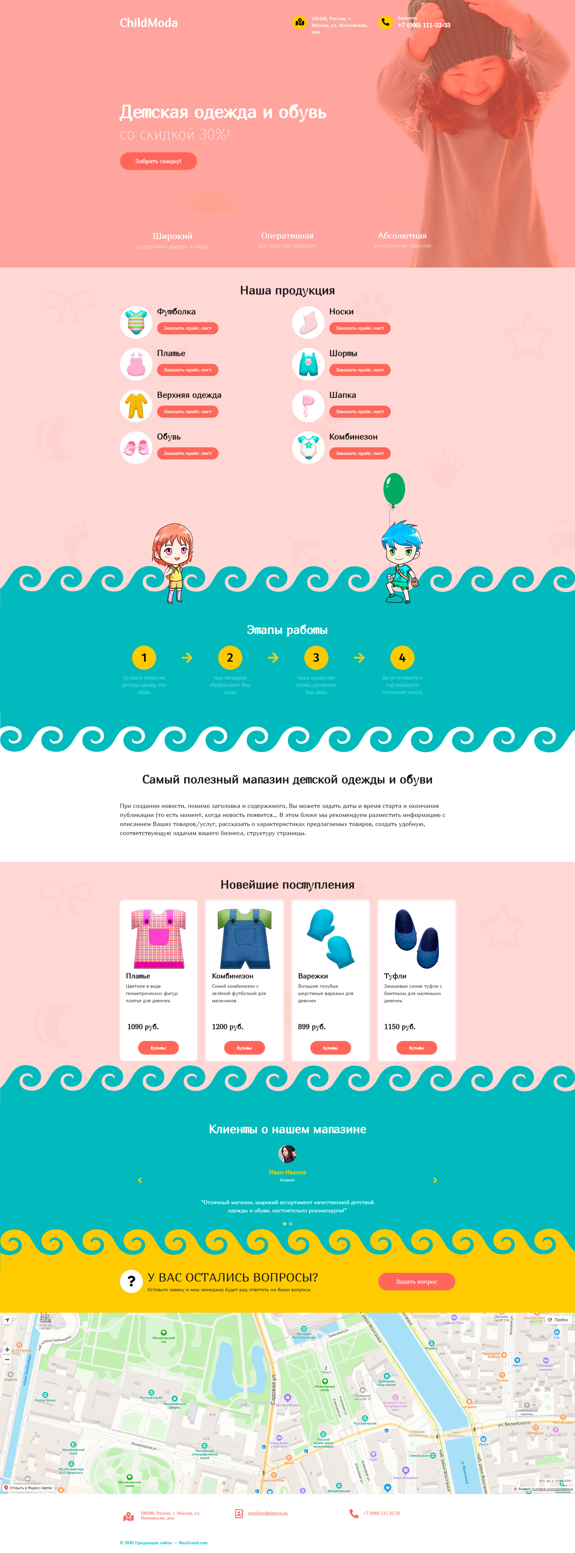 Закажите готовый продающий сайт лендинг #1506201 в Арзамасе за 1-3 дня «под ключ»: свёрстан, отрисован и готов к рекламе. Тематика шаблона «Детская одежда и обувь».