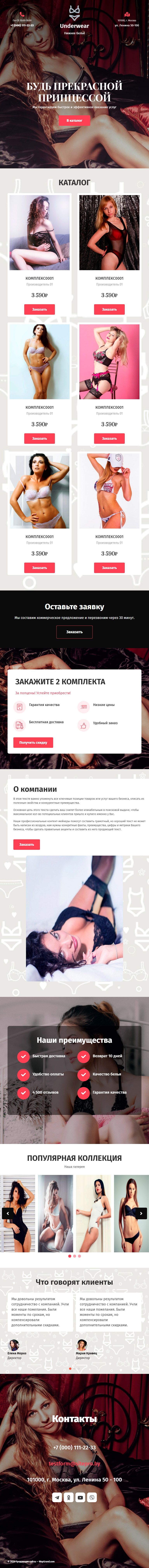 Закажите готовый продающий сайт лендинг #1514201 в Арзамасе за 1-3 дня «под ключ»: свёрстан, отрисован и готов к рекламе. Тематика шаблона «Нижнее белье».