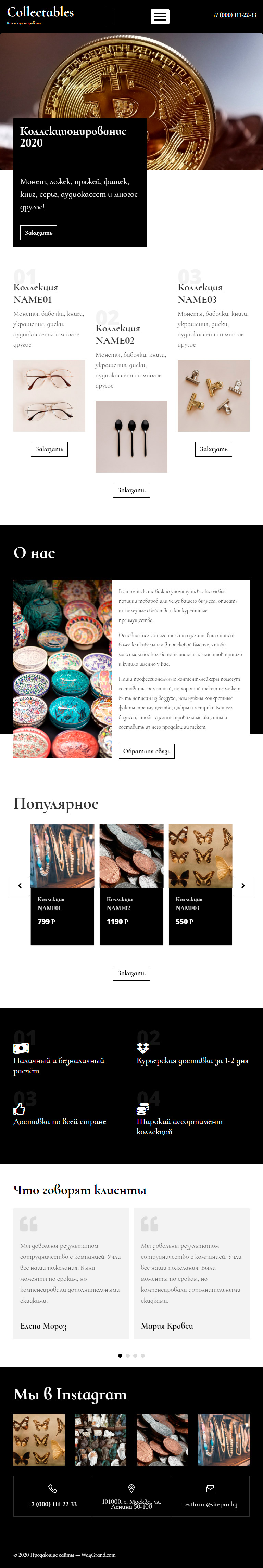 Закажите готовый продающий сайт лендинг #0801201 в Арзамасе за 1-3 дня «под ключ»: свёрстан, отрисован и готов к рекламе. Тематика шаблона «Коллекционирование».