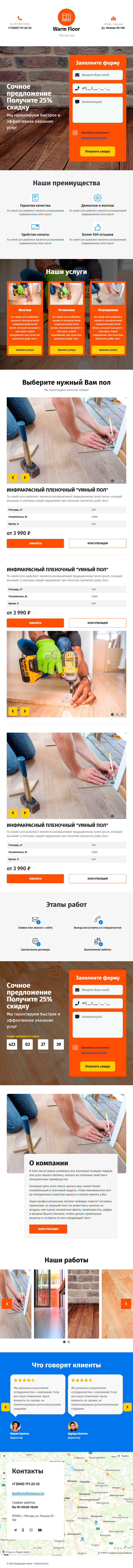 Закажите готовый продающий сайт лендинг #2153201 в Арзамасе за 1-3 дня «под ключ»: свёрстан, отрисован и готов к рекламе. Тематика шаблона «Монтаж тёплого пола».