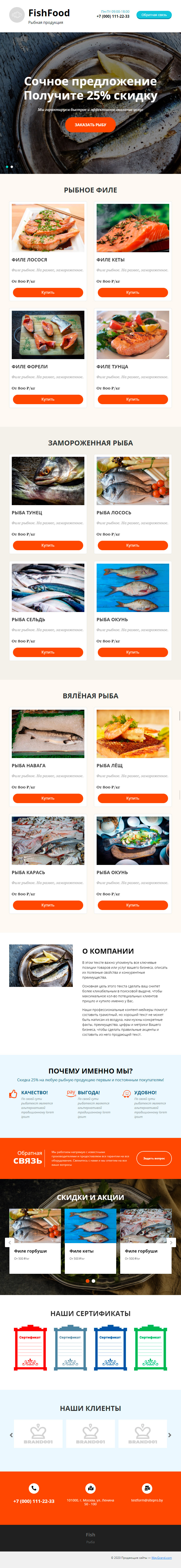 Закажите готовый продающий сайт лендинг #1731201 в Арзамасе за 1-3 дня «под ключ»: свёрстан, отрисован и готов к рекламе. Тематика шаблона «Рыбная продукция».