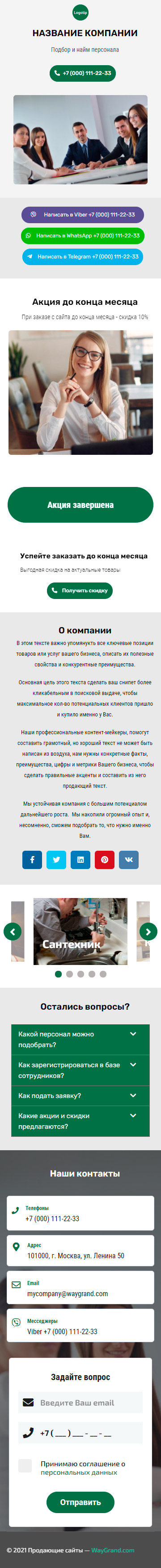 Закажите готовый продающий сайт визитка #1415101 в Арзамасе за 5-7 дня «под ключ»: свёрстан, отрисован и готов к рекламе. Тематика шаблона «Подбор и найм персонала».