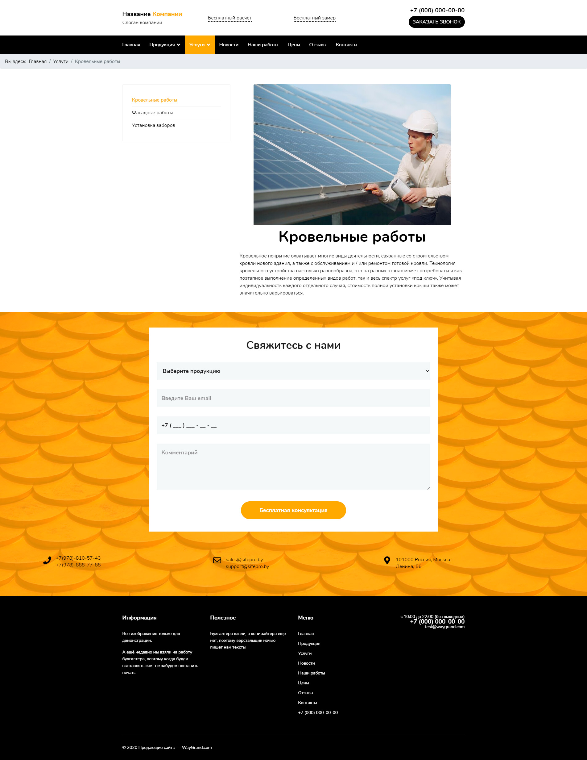 Закажите готовый продающий сайт визитка #2132301 в Арзамасе за 5-7 дня «под ключ»: свёрстан, отрисован и готов к рекламе. Тематика шаблона «Заборы, кровля, фасады».