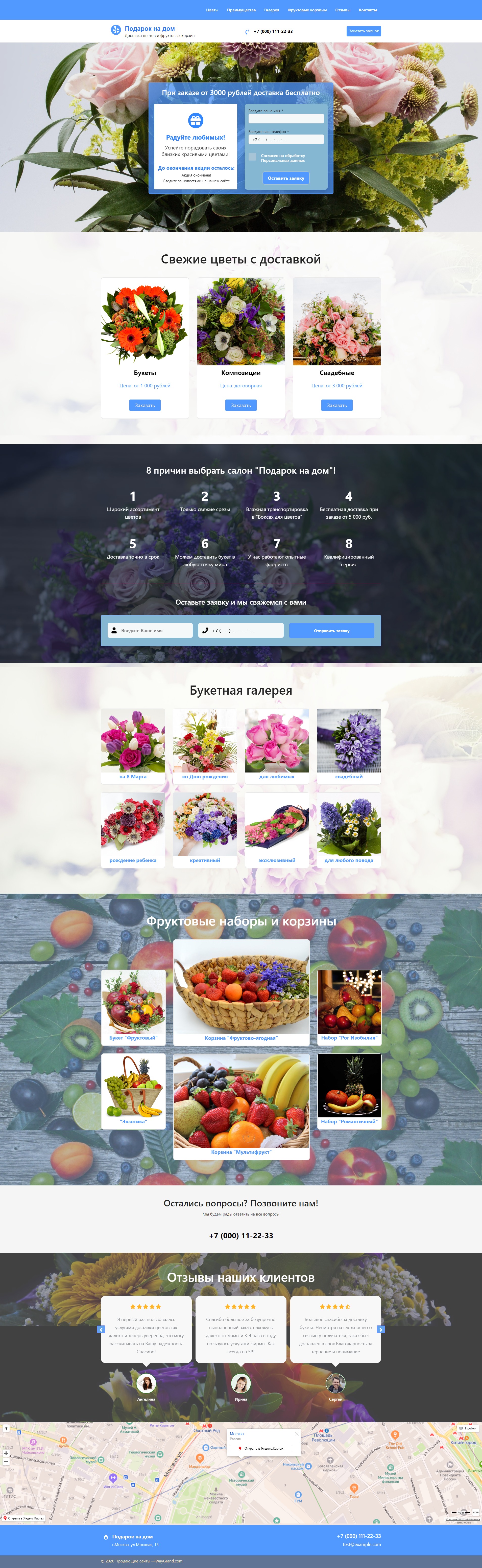 - Промоблок с формой "При заказе от 3000 рублей доставка бесплатно"