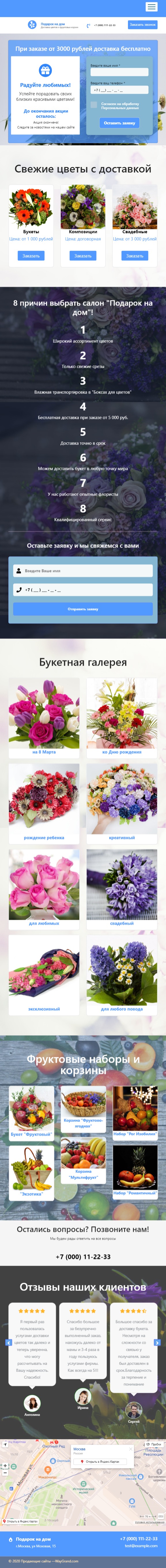 Закажите готовый продающий сайт лендинг #2404203 в Арзамасе за 1-3 дня «под ключ»: свёрстан, отрисован и готов к рекламе. Тематика шаблона «Доставка букетов на дом».