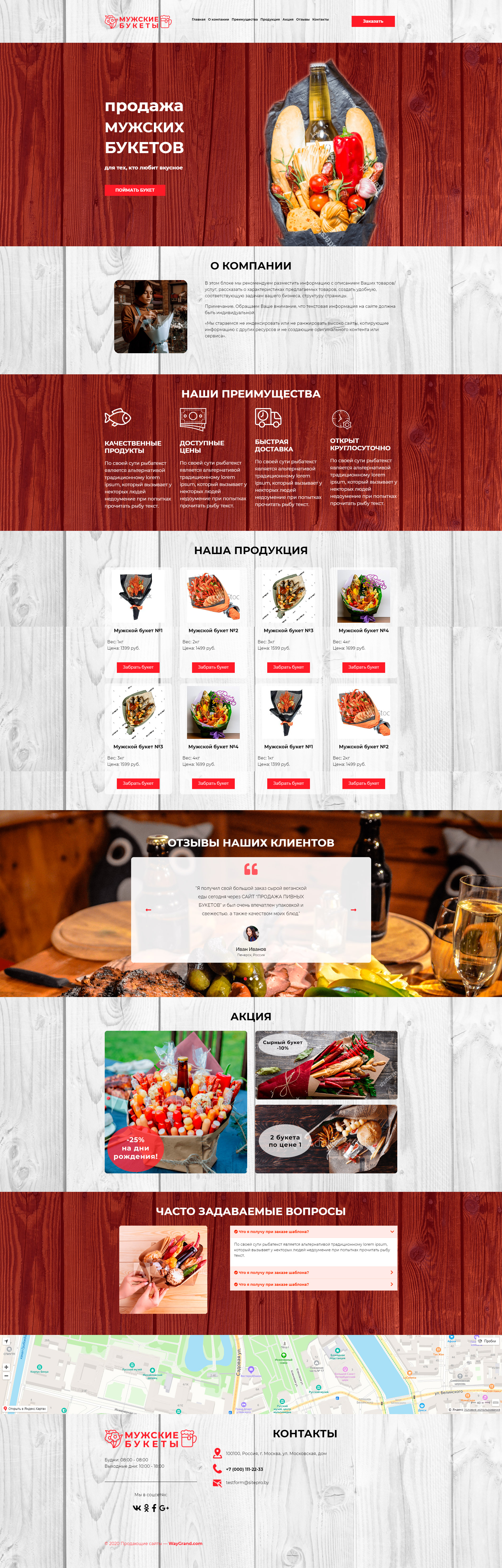 Закажите готовый продающий сайт лендинг #2404204 в Арзамасе за 1-3 дня «под ключ»: свёрстан, отрисован и готов к рекламе. Тематика шаблона «Мужские букеты».