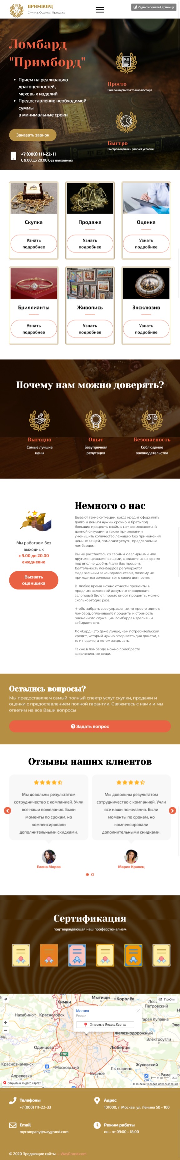 Закажите готовый продающий сайт лендинг #2408201 в Арзамасе за 1-3 дня «под ключ»: свёрстан, отрисован и готов к рекламе. Тематика шаблона «Ломбард».