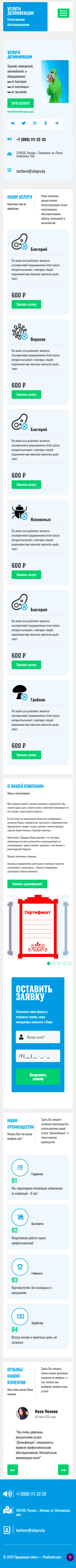 Закажите готовый продающий сайт лендинг #0608201 в Арзамасе за 1-3 дня «под ключ»: свёрстан, отрисован и готов к рекламе. Тематика шаблона «Услуги дезинфекции».