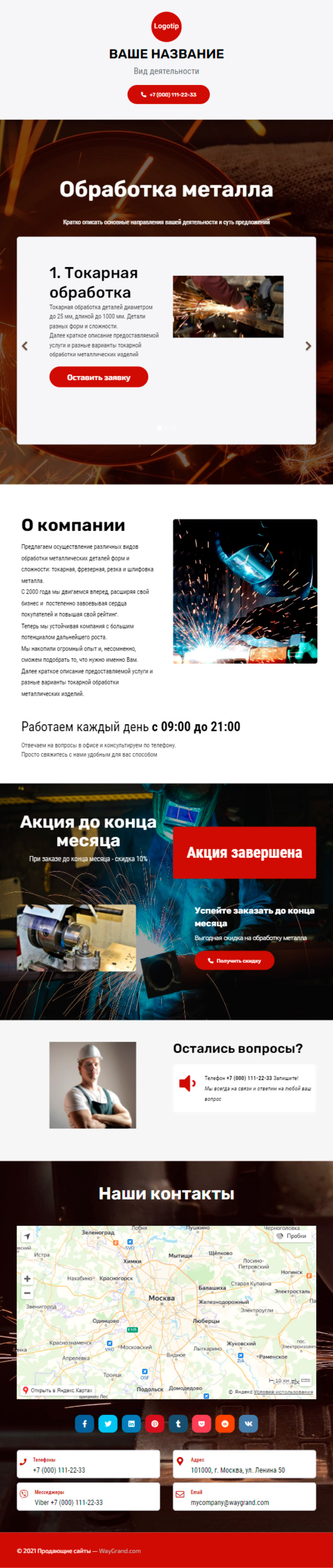 Закажите готовый продающий сайт визитка #1209101 в Арзамасе за 5-7 дня «под ключ»: свёрстан, отрисован и готов к рекламе. Тематика шаблона «Обработка металла».