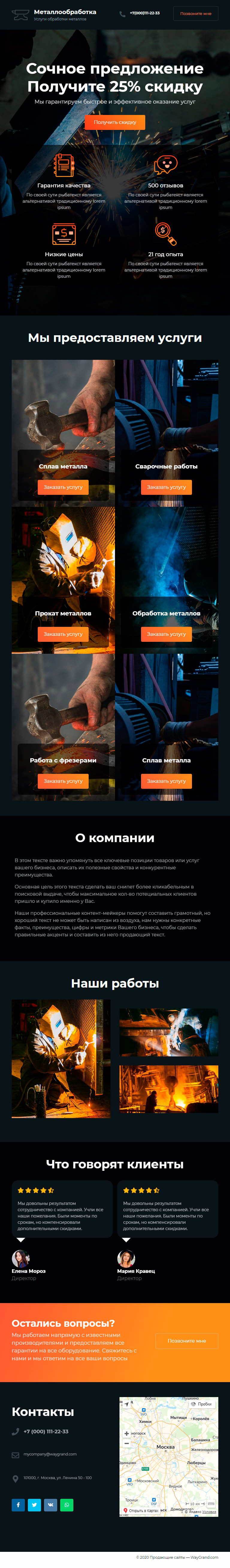 Закажите готовый продающий сайт лендинг #1209201 в Арзамасе за 1-3 дня «под ключ»: свёрстан, отрисован и готов к рекламе. Тематика шаблона «Металлообработка».