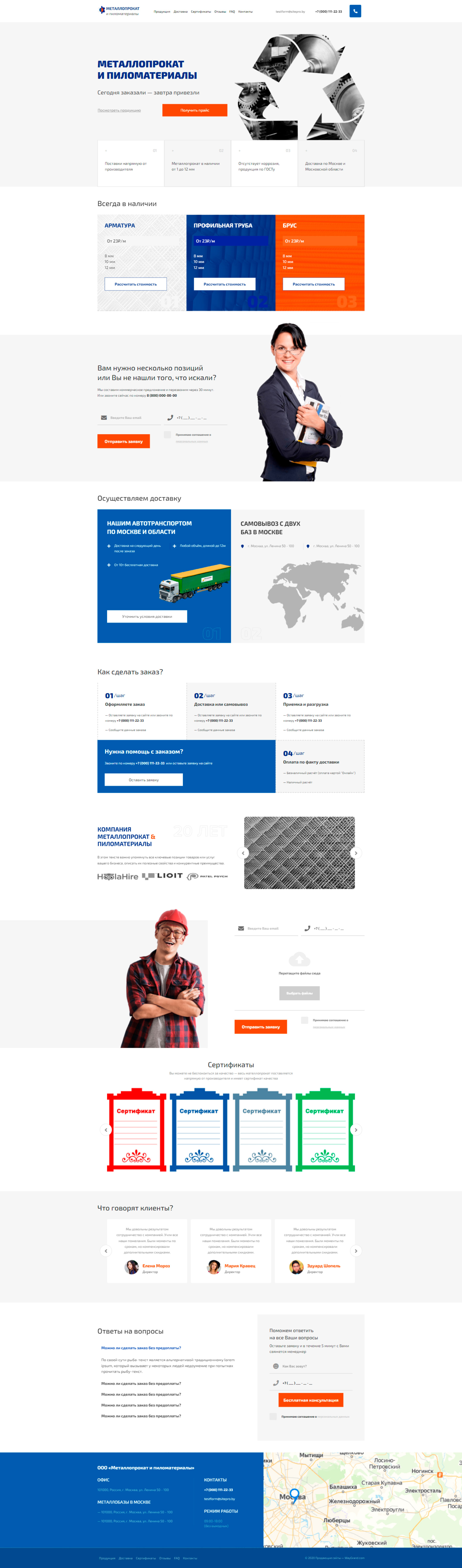 Закажите готовый продающий сайт лендинг #1211201 в Арзамасе за 1-3 дня «под ключ»: свёрстан, отрисован и готов к рекламе. Тематика шаблона «Металлопрокат и пиломатериалы».