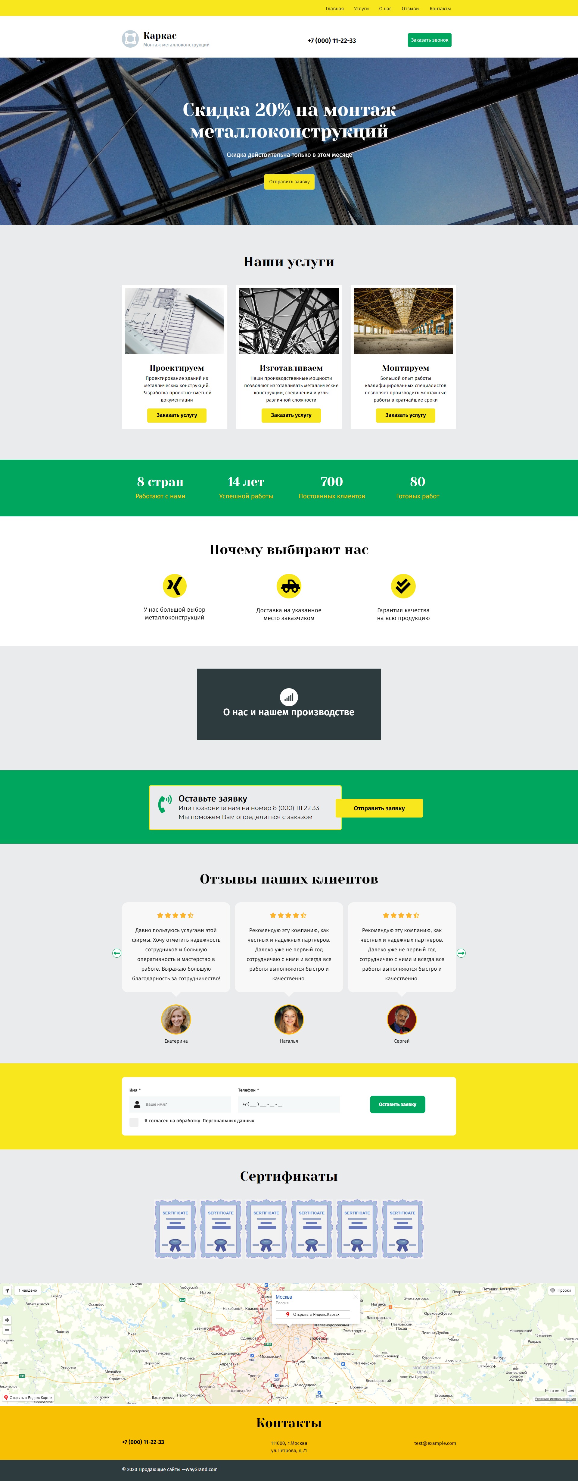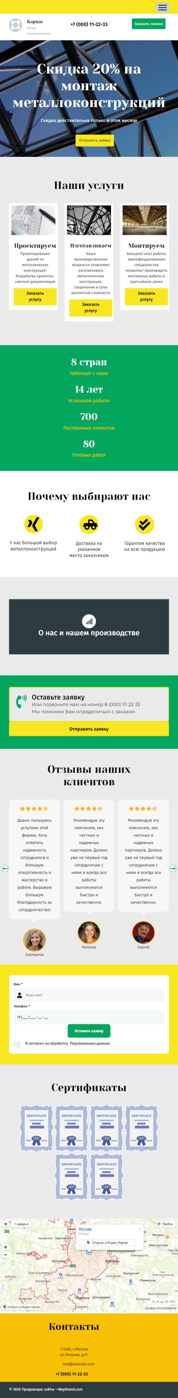 Закажите готовый продающий сайт лендинг #2027201 в Арзамасе за 1-3 дня «под ключ»: свёрстан, отрисован и готов к рекламе. Тематика шаблона «Металлоконструкции».