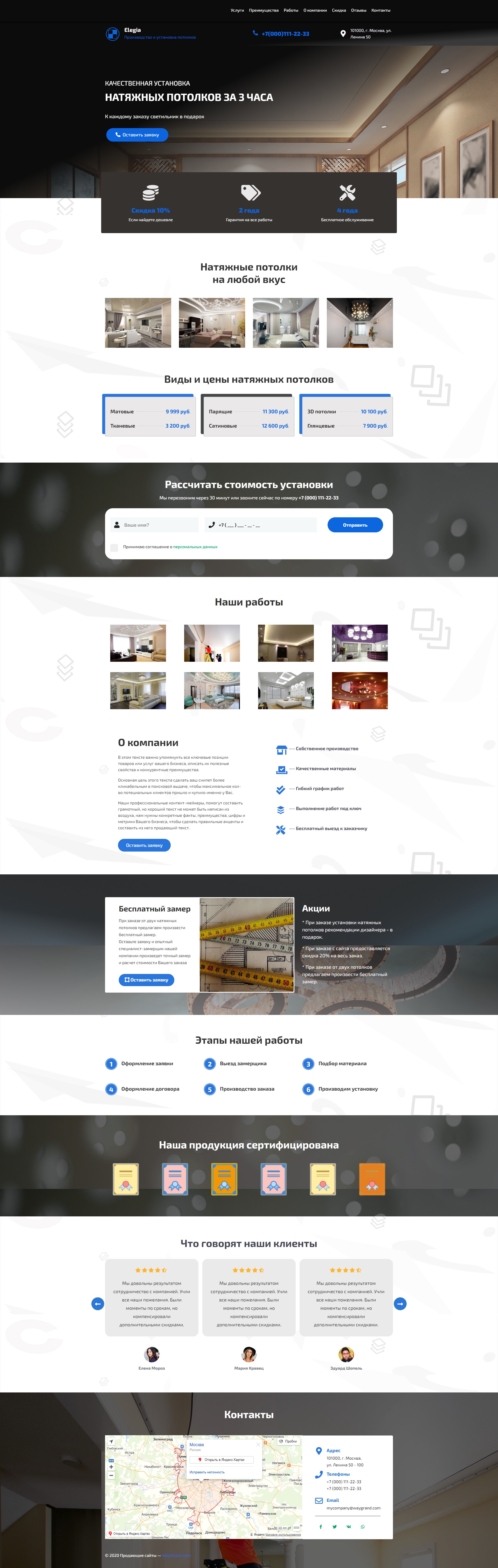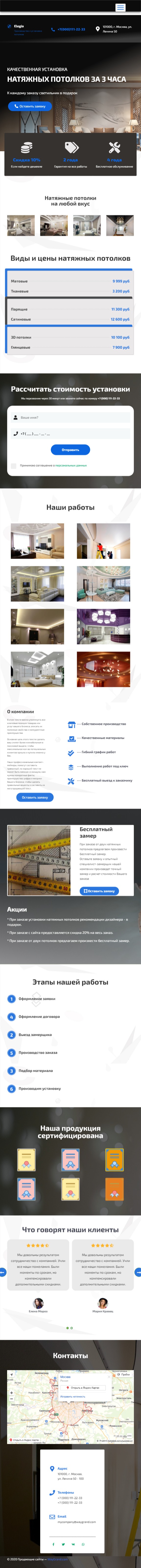 Закажите готовый продающий сайт лендинг #2029202 в Арзамасе за 1-3 дня «под ключ»: свёрстан, отрисован и готов к рекламе. Тематика шаблона «Натяжные потолки».