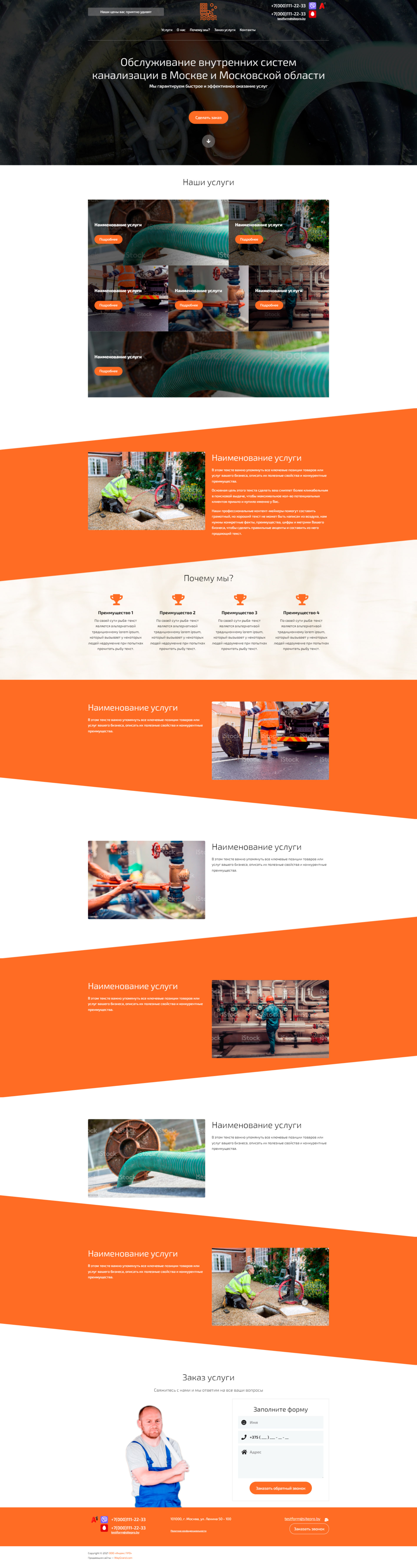 Закажите готовый продающий сайт лендинг #2137202 в Арзамасе за 1-3 дня «под ключ»: свёрстан, отрисован и готов к рекламе. Тематика шаблона «Обслуживание внутренних систем канализации».
