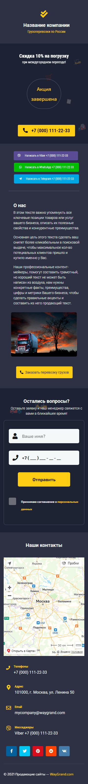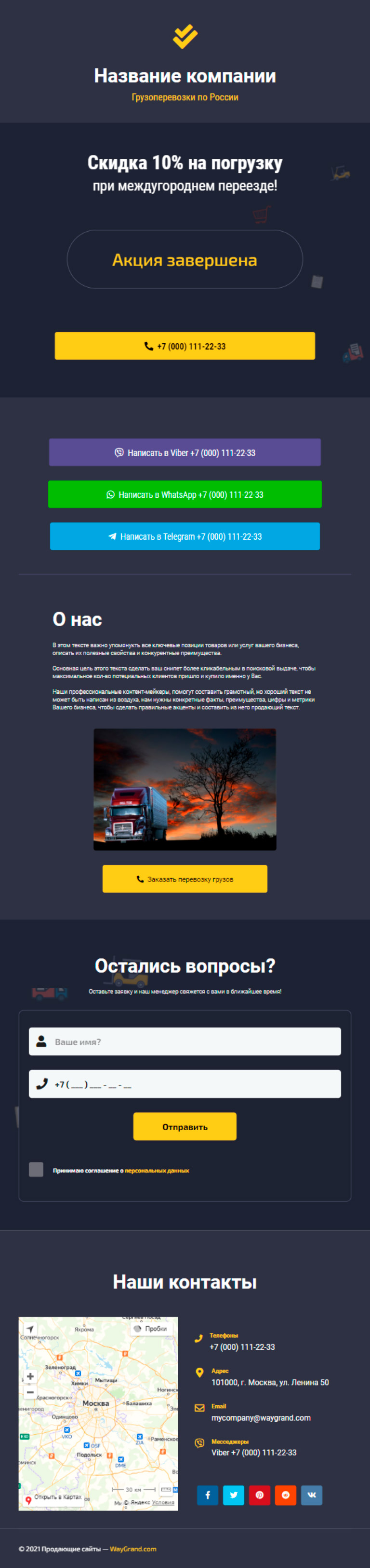 Закажите готовый продающий сайт визитка #2515101 в Арзамасе за 5-7 дня «под ключ»: свёрстан, отрисован и готов к рекламе. Тематика шаблона «Грузоперевозки по России».