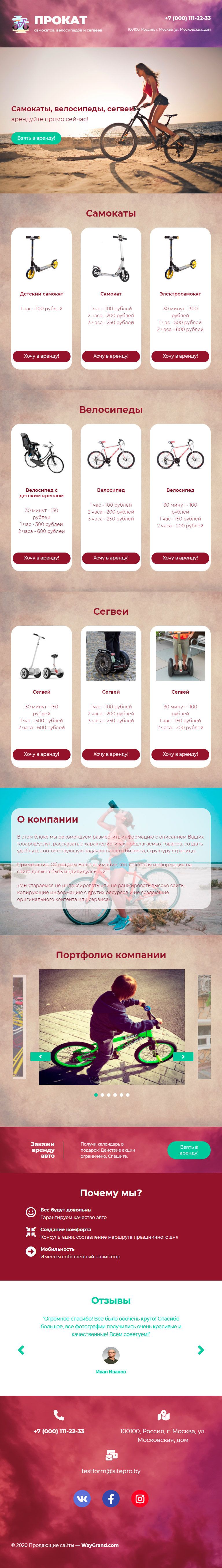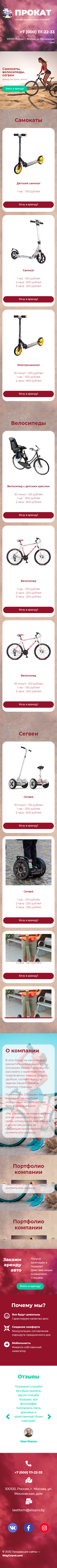 Закажите готовый продающий сайт лендинг #1907201 в Арзамасе за 1-3 дня «под ключ»: свёрстан, отрисован и готов к рекламе. Тематика шаблона «Прокат самокатов и велосипедов».