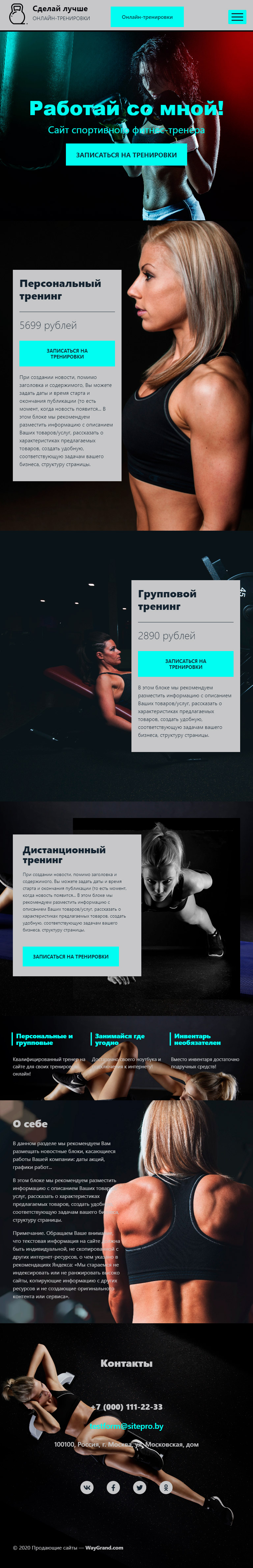 Закажите готовый продающий сайт лендинг #1955203 в Арзамасе за 1-3 дня «под ключ»: свёрстан, отрисован и готов к рекламе. Тематика шаблона «Фитнес тренер».