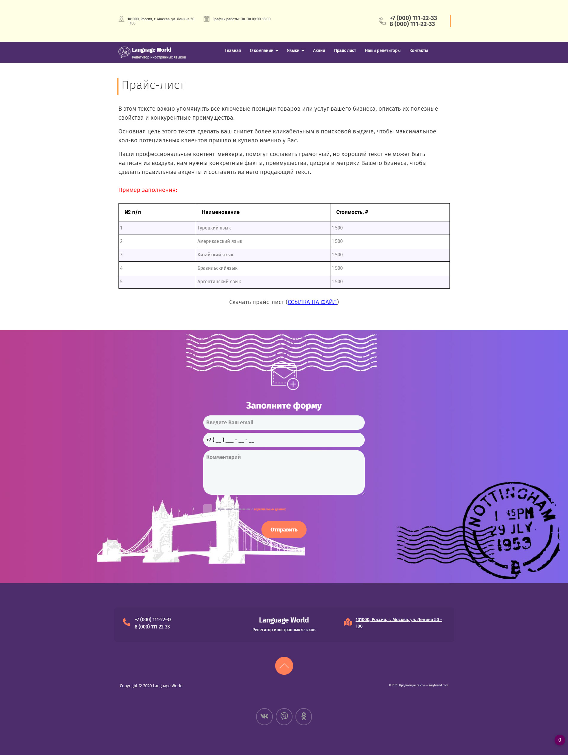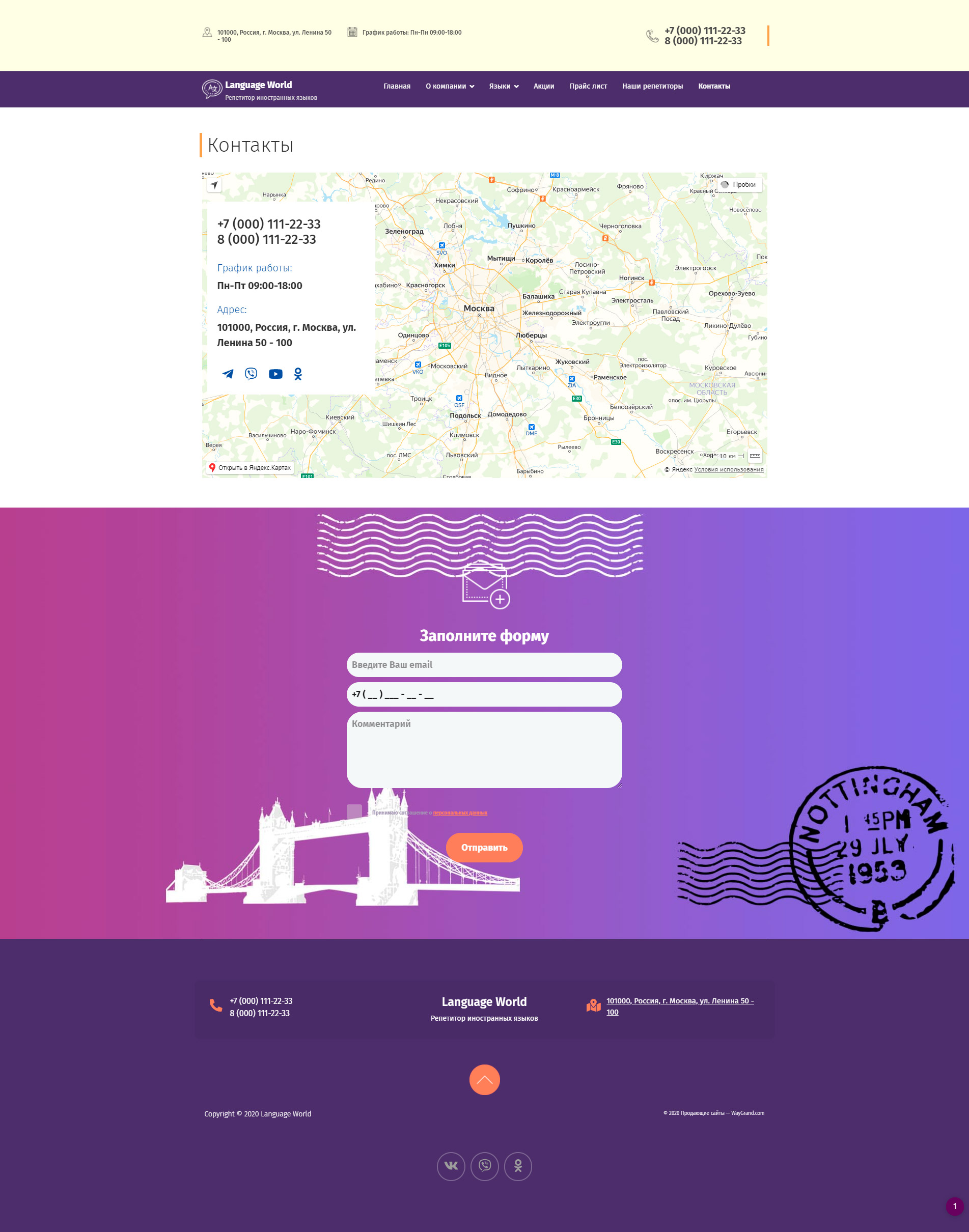 Закажите готовый продающий сайт визитка #1448301 в Арзамасе за 5-7 дня «под ключ»: свёрстан, отрисован и готов к рекламе. Тематика шаблона «Курсы иностранных языков».