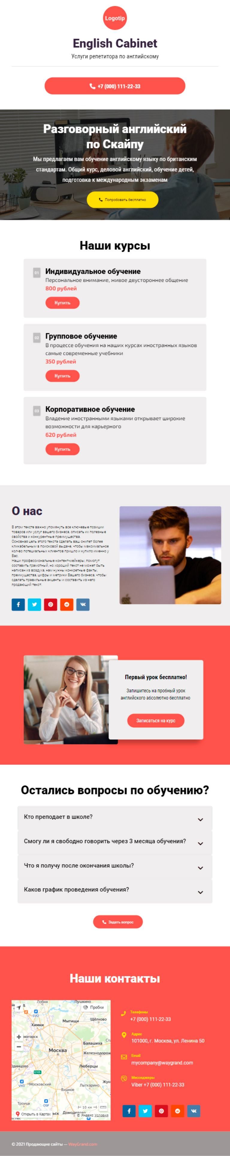 - Блок "Первый урок бесплатно!"