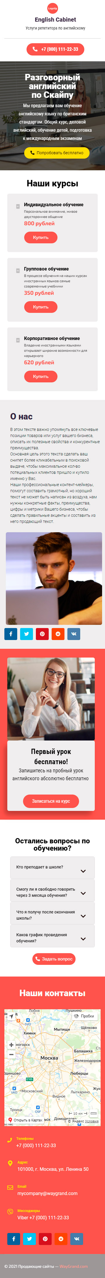 Закажите готовый продающий сайт визитка #1463101 в Арзамасе за 5-7 дня «под ключ»: свёрстан, отрисован и готов к рекламе. Тематика шаблона «Услуги репетитора по английскому».