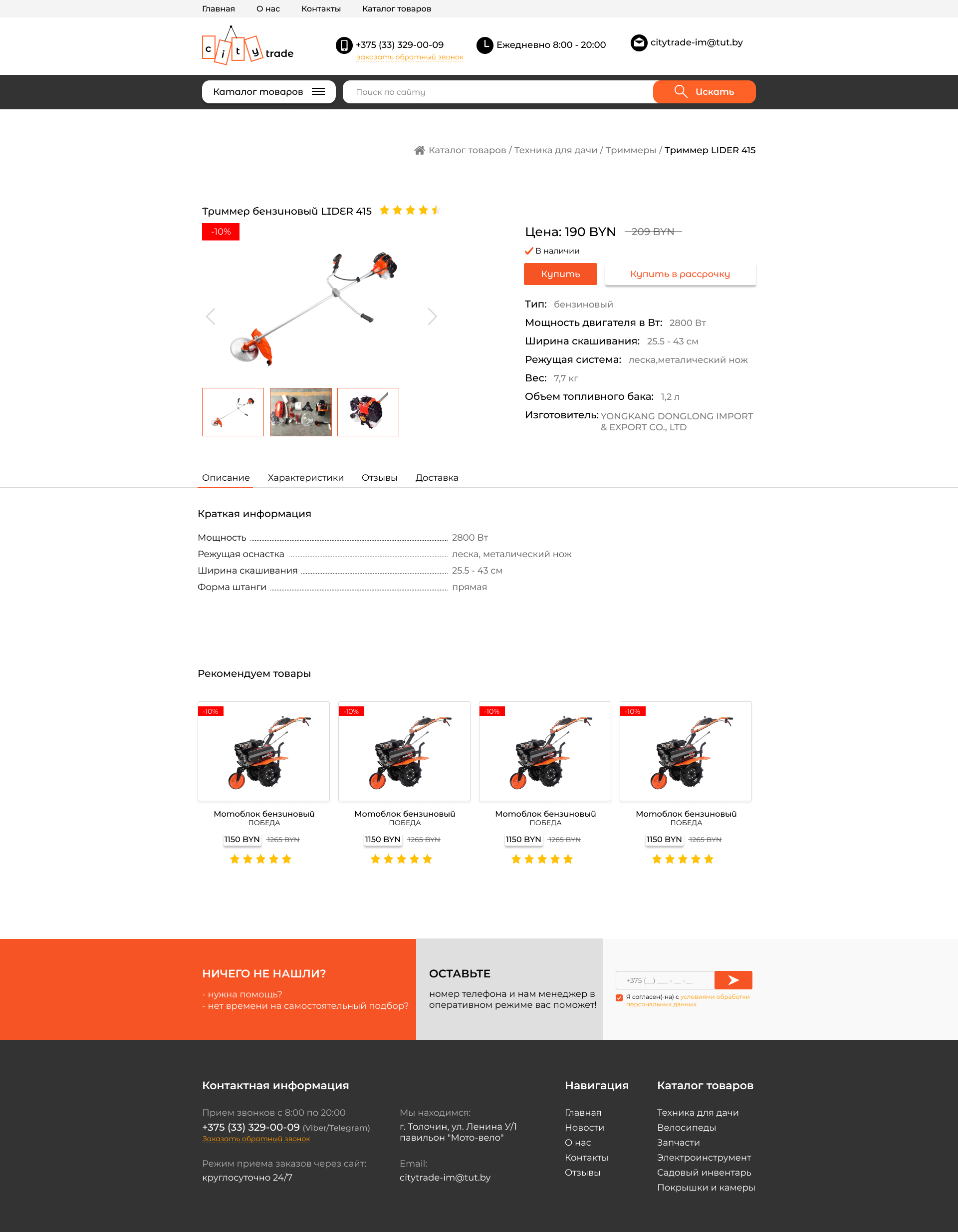 Закажите готовый продающий сайт визитка #281 в Арзамасе за 5-7 дня «под ключ»: свёрстан, отрисован и готов к рекламе. Тематика шаблона «Розничная продажа садовой техники, велосипедов».