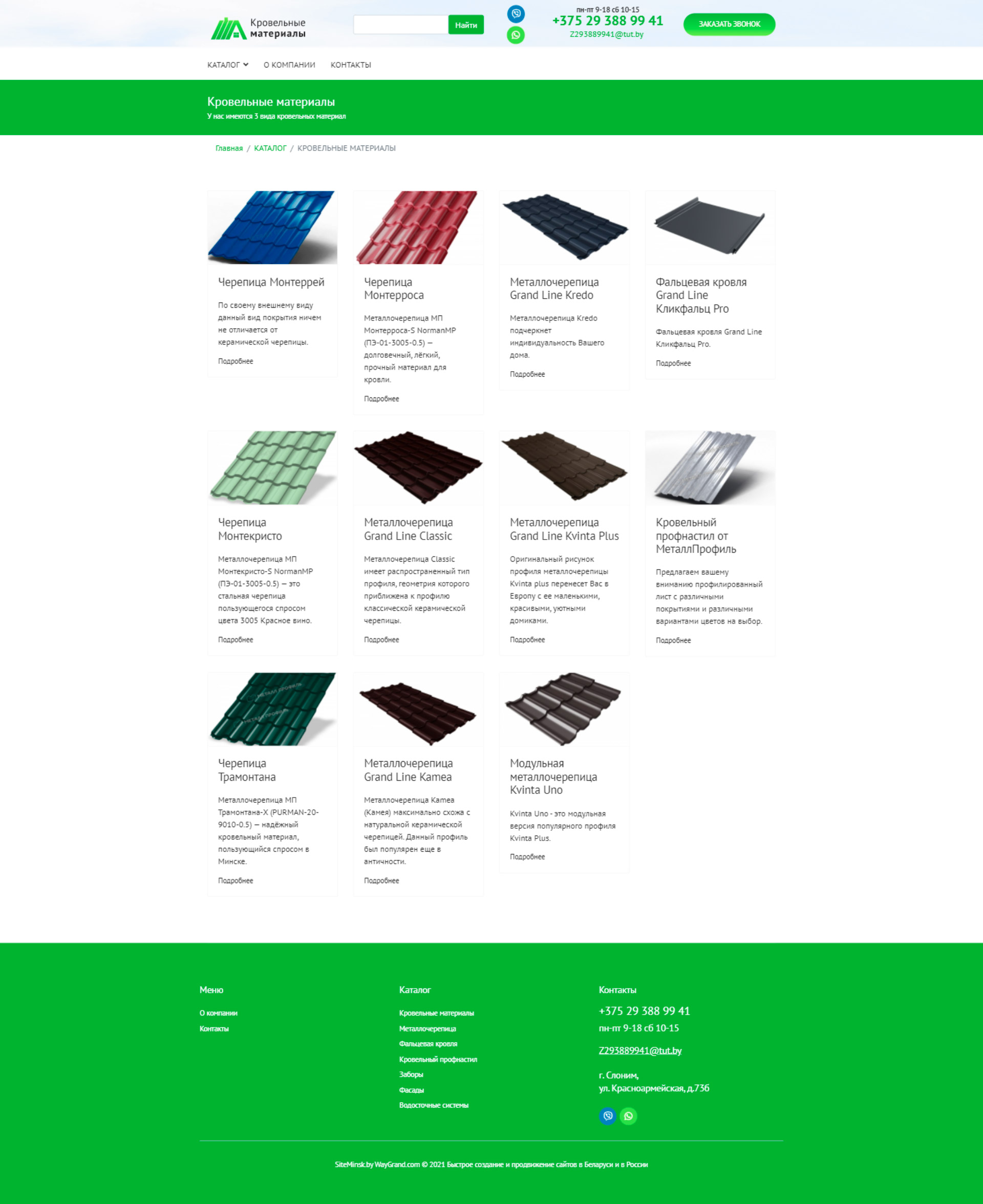 Закажите готовый продающий сайт визитка #324 в Арзамасе «под ключ» на waygrand по выгодной цене: свёрстан, отрисован и готов к рекламе. Тематика шаблона «Кровельные материалы».