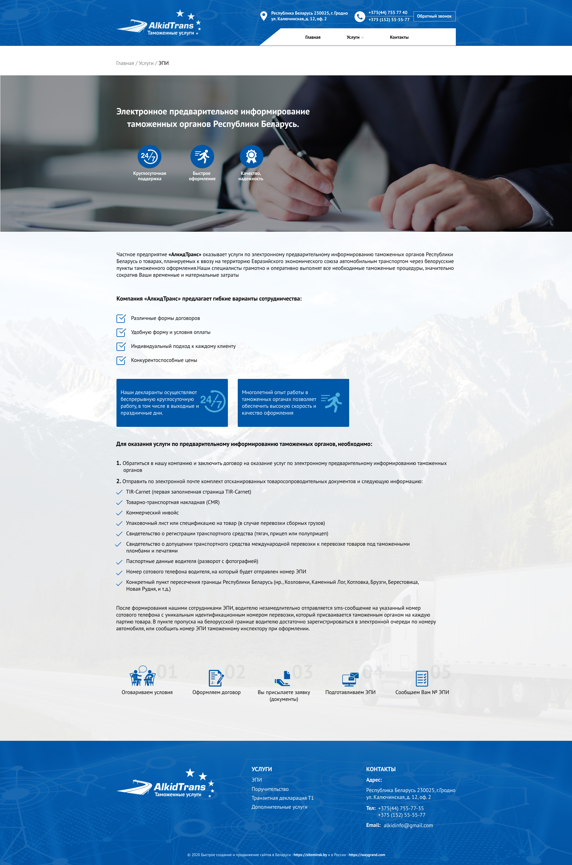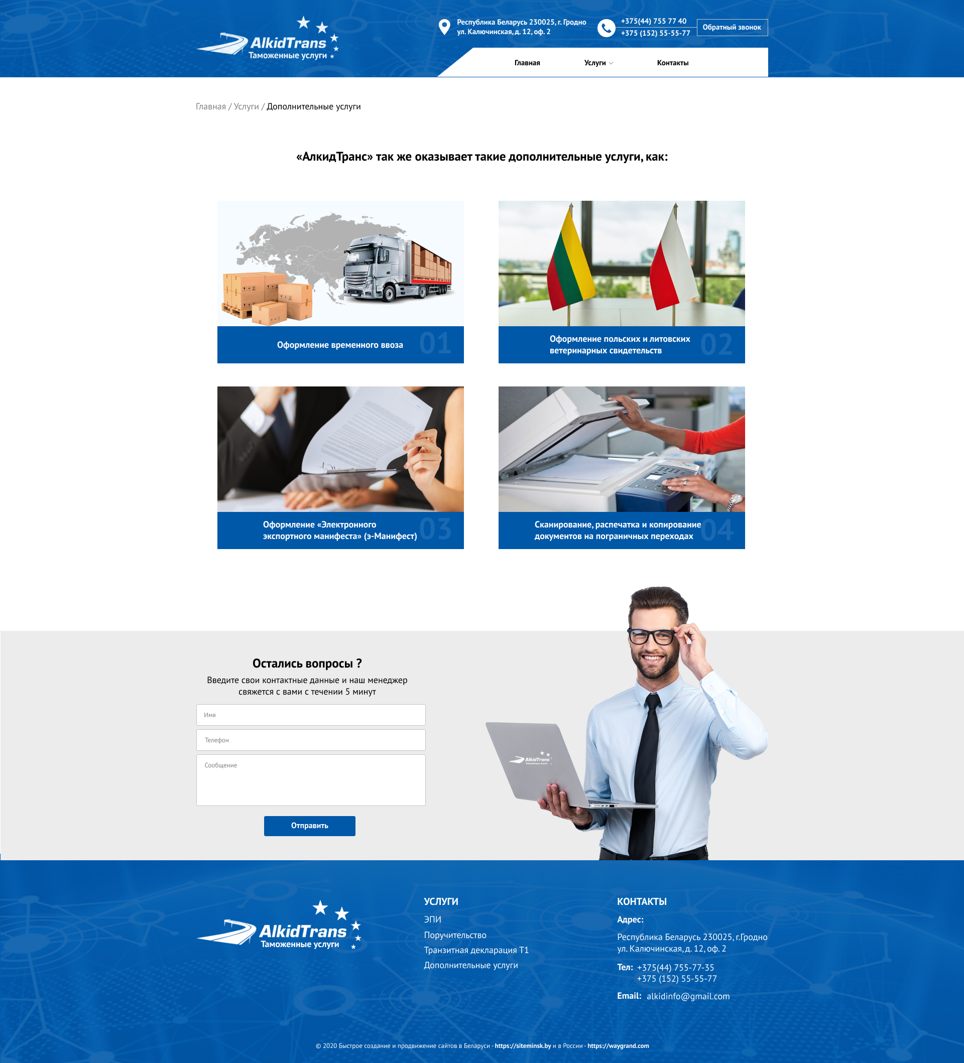 Закажите готовый продающий сайт визитка #234 в Арзамасе за 5-7 дня «под ключ»: свёрстан, отрисован и готов к рекламе. Тематика шаблона «Таможенные услуги».