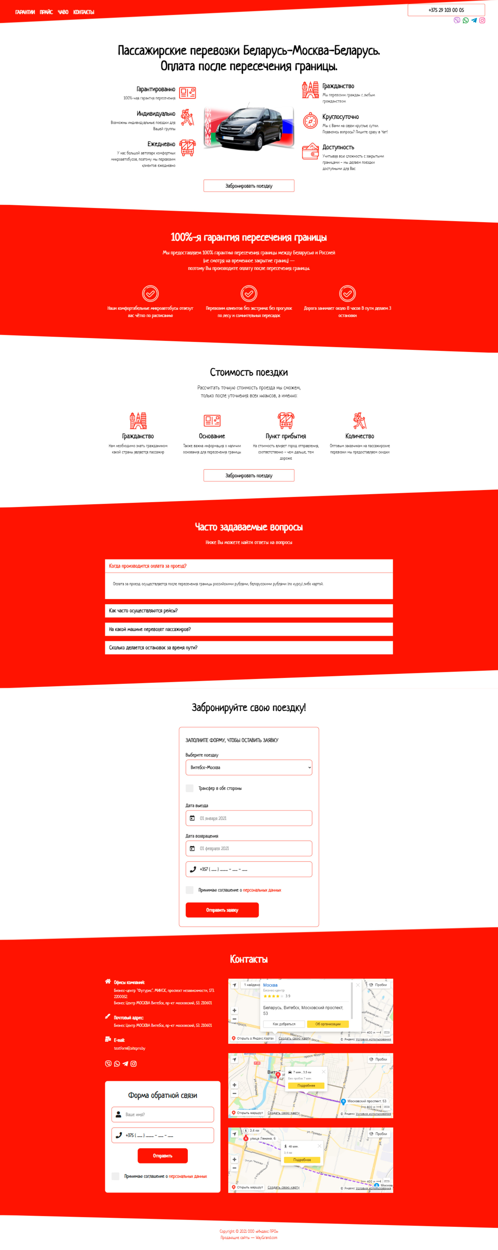 - Блок "Контакты" с формой "Форма обратной связи" и картами